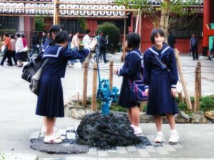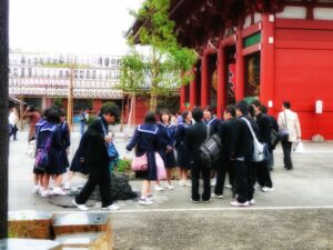 La gigante lanterna al centro del Kaminarimon, la porta del tuono, è pronta per essere immortalata. La guardo di lato, insieme a degli studenti.