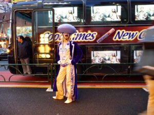 La nostra fame l’abbiamo placata in un sushi trovato a caso, molto chic. Poi ci siamo persi, poi siamo finiti da Muji a spendere i nostri ultimi risparmi della giornata in muffin neri al sesamo, testicoli rosa alla fragola, cioccolatini e pankoala. Sì Avete letto bene Pankoala, non chiedetemi cosa siano, perché sono talmente stanco e in jet lag che ormai ingurgito di tutto, compro qualsiasi cosa e cammino come uno zombie.