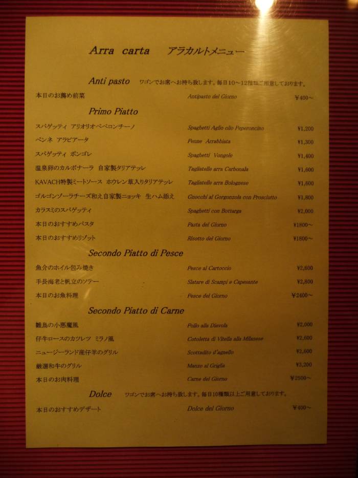 I menù recitano più o meno così “Ristorante l’Eccesso, con pasta arra Bologna e arra arrabbiata, spaghetti, vongolè pasta del giorno, carne del giorno, risotto del giorno” (e non ho fatto errori di battitura!).