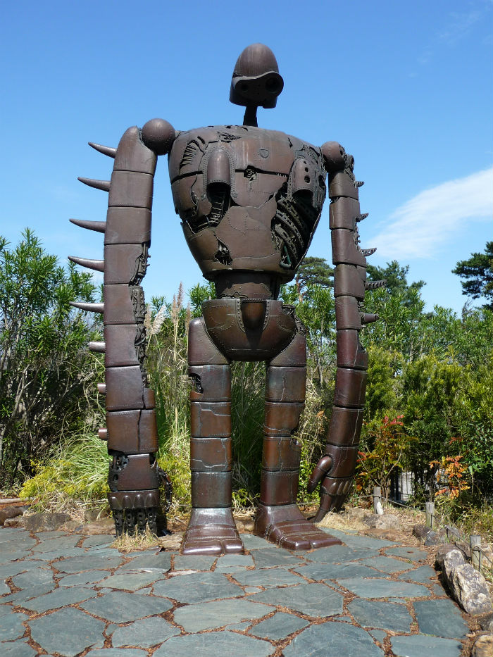 Sopra il tetto del castelletto c’è un giardino con il robot di Laputa a grandezza naturale e il cubo con le scritte “laputesi”, che se guardate il film capirete cosa c’è scritto.