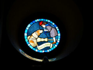 All’ingresso c’è un salone con 4 scale e un ponte in mezzo, tutte le finestre hanno vetrate colorate con disegnati i personaggi dei cartoni animati più iconici dello studio Ghibli: c’è Kiki’s Delivery Service, Totoro, il cervo della Principessa Mononoke e Pete, l’amico scoreggione di Heidi. Scusate un attimo…