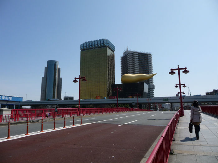 La fiamma di Philippe Stark troneggia sopra il building dell’Asahi. Alcuni clochard se la prendono con il governo. Un uomo dipinge su una tela il profilo dei palazzi, i ciliegi cercano di esplodere, nonostante non sia il loro momento. Che pace si respira, che bello non stare in mezzo alla gente che grida.