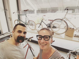 «L’idea è nata sfogliando una rivista dov’era pubblicato un servizio sul negozio tokyobike di Londra… ed è stato amore a prima vista! Così mi sono fatta aiutare da un’amica giapponese e ho scritto una lettera all’azienda. La prima risposta è stata “Grazie, ma no”. Poi sono riuscita a far capire il mio progetto e a far passare l’idea che anche Milano è una città che ama le bici.»