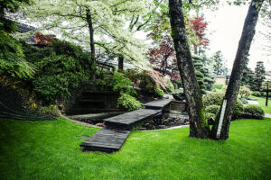 Ma nel giardino del Centro Crespi Bonsai. Un vero giardino giapponese, con tanto di laghetto, carpe koi, lanterne in pietra e patio per le cerimonie.