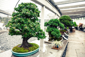 È un enorme negozio con gigantesche riproduzioni di Hokusai sui muri, un parcheggio ben curato e questo grande cartello con scritto “Bonsai“.