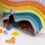 All’interno della linguetta ci sono dei piccoli oggettini che riproducono quelli presenti nella scultura originale: un paio di scarpe, una lattina, un sacchetto di patatine, un muffin e la lozione Johnson’s Baby.