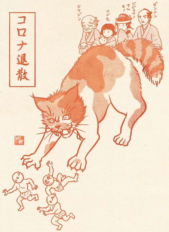 Alla fine del periodo Edo venivano vendute delle stampe rosse, chiamate Aka-e (赤絵) una sorta di amuleti contro malattie come il vaiolo, il colera e il morbillo.