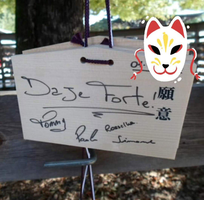 Io ci vengo spesso, perché voglio comprare gli Ema 絵馬 le tavole di legno dove i credenti shintoisti scrivono i loro desideri o le preghiere, per poi appenderle in un apposito spazio insieme ad altre centinaia di Ema. Tutte le lingue oscillano fra auspici e auguri. Ti accorgi che alla fine non siamo poi così egoisti. Chiediamo la pace nel mondo, un po’ di serenità per i famigliari e poi ovvio un parto indolore senza epidurale e qualche spiccio, ma giusto pochi per non arrivare tirati a fine mese.