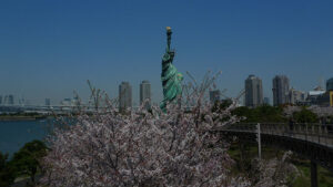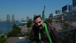 Stamattina ho fatto un giro sull’Isola di Odaiba. Mi piace prendere la monorotaia. Sembra un treno del tempo, ad ogni fermata avanzi di un decennio.