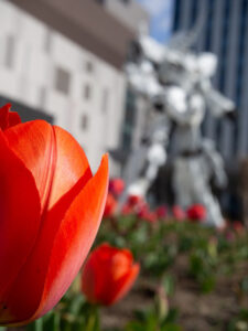 Tutti corrono per vedere il Gundam gigante, con il suo piccolo bar che vende gadget a non finire.