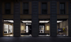 Un grande spazio con un bell’affaccio su strada, ma che ingloba e prosegue oltre al cortile interno, a sviluppare una una sorta di percorso nella creatività del marchio giapponese.