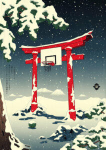Samurai pronti a sfidare LeBron in un quadro Ukiyo-e, Torii che si tramutando in canestri pronti all’uso e Geisha moderne bramose di Air Jordan.