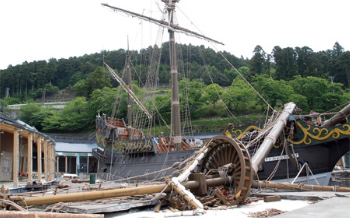 La riproduzione della San Juan Bautista o chiamata da tutti La grande nave nera di Tsunenaga è stata distrutta l’11 Marzo 2011 dal grande Tsunami che travolse le coste del Tohoku.