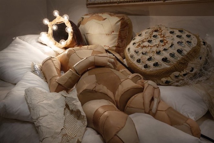 I set immaginifici nei quali si ritrae mettono in scena le sue fantasie e sono pieni di oggetti che lei stessa realizza, come le sue mille gambe di pezza e le scenografie tra il kitsch e il kawaii.