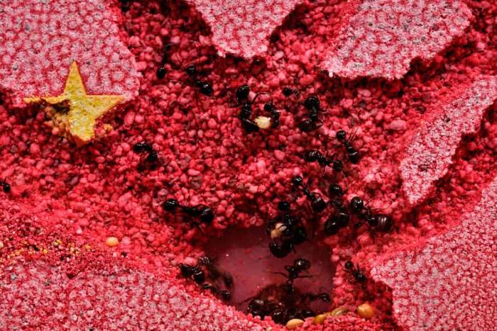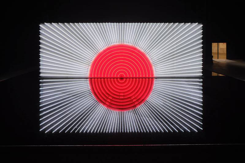 In altre opere Yanagi lavora con simboli nazionali, bandiere, colori e forme riconoscibili, ma sempre trattati come qualcosa di instabile. Non c’è mai l’idea di un’identità fissa: tutto sembra destinato a muoversi, a mescolarsi, a perdere definizione. È un approccio che risuona molto con la storia giapponese del Novecento, segnata da confini ridisegnati, alleanze forzate e identità continuamente rinegoziate.