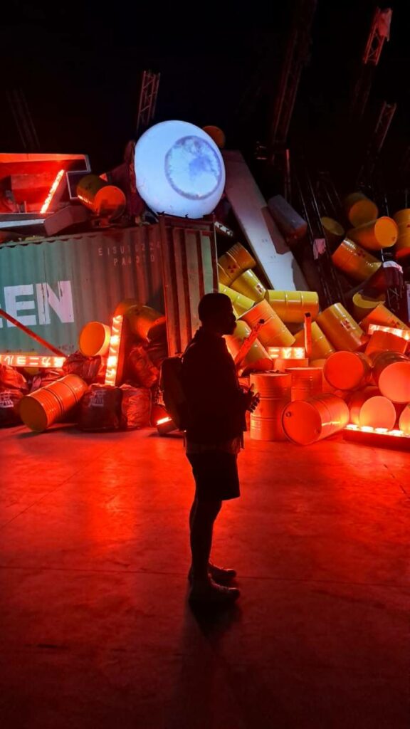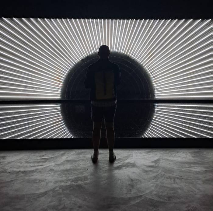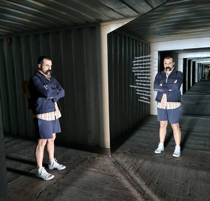 Una delle installazioni più emblematiche è quella composta da container industriali. Oggetti che associamo al commercio globale, alla logistica, alla circolazione delle merci, diventano improvvisamente un labirinto percorribile. Dentro non c’è nulla di rassicurante: corridoi stretti, superfici riflettenti, parole incise, luci che disorientano. Il container, simbolo di efficienza e controllo, si trasforma in un luogo ambiguo, dove orientarsi è difficile. Un’immagine piuttosto efficace di come funzionano molti sistemi contemporanei.