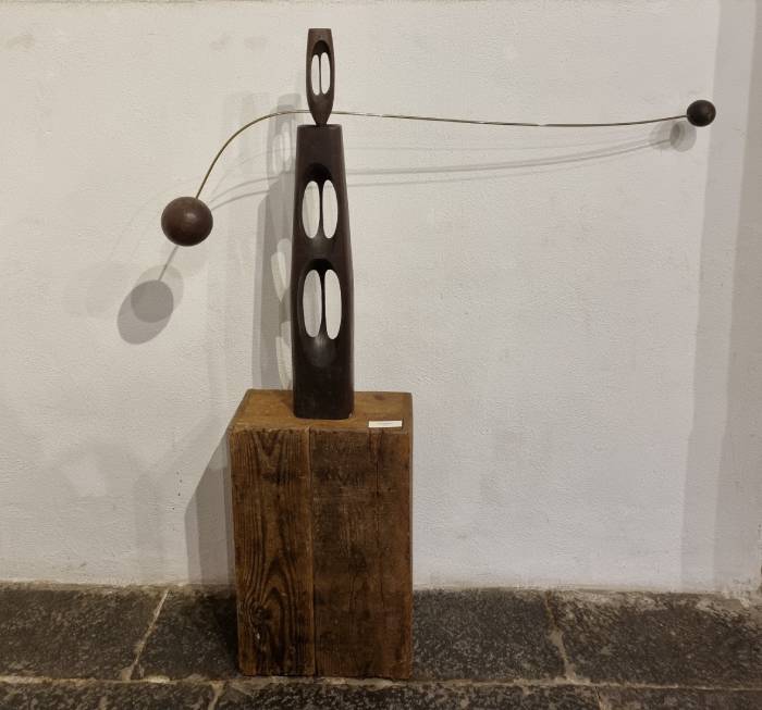 Le sculture in mostra raccontano bene questo percorso. Sono opere in legno, bronzo e pietra, ma non cercano mai la pesantezza. Anzi, sembrano alleggerirsi attraverso aperture ovali, superfici traforate, ritmi regolari che lasciano passare la luce.
