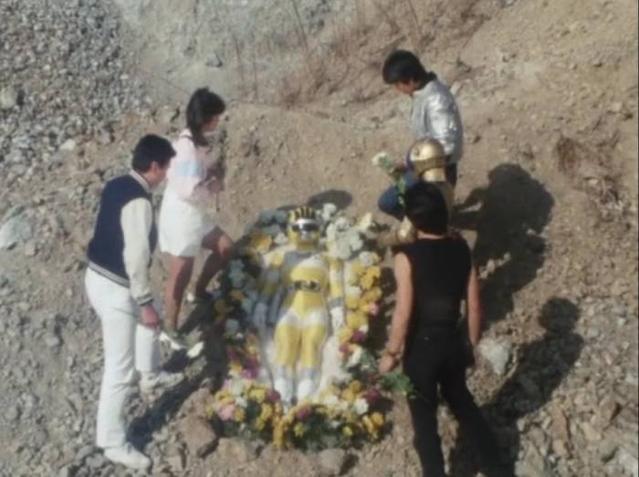 La povera Yellow Four si prende raggi gamma, laser paralizzanti ed esplosioni nel didietro al posto dei suoi quattro amici colorati. Gli altri cosa fanno? Urlano “Ierō Fō! Ierō Fō!” agitando le braccia come gabbiani isterici al porto di Yokohama. Nessuno che dica “oh, magari la proteggiamo”. Niente nulla. Solo versi e finta compassione davanti alla povera moribonda che bestemmia per il dolore.