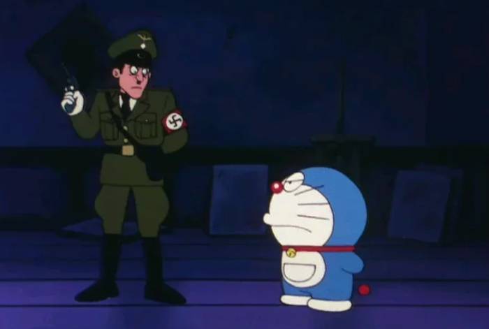 Immagina di accendere la TV negli anni ’80 e trovare Doraemon che, con sguardo autoritario, inizia a impartire ordini a un soldato del Terzo Reich.